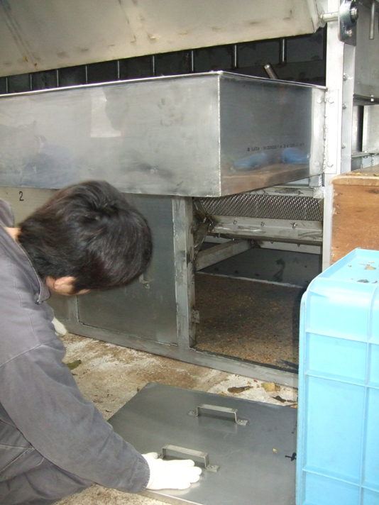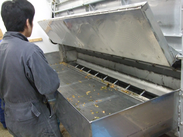 ↑砂取り完了後、扉を開けると撹拌ドラムの回転の勢いで昆布が出てきます。